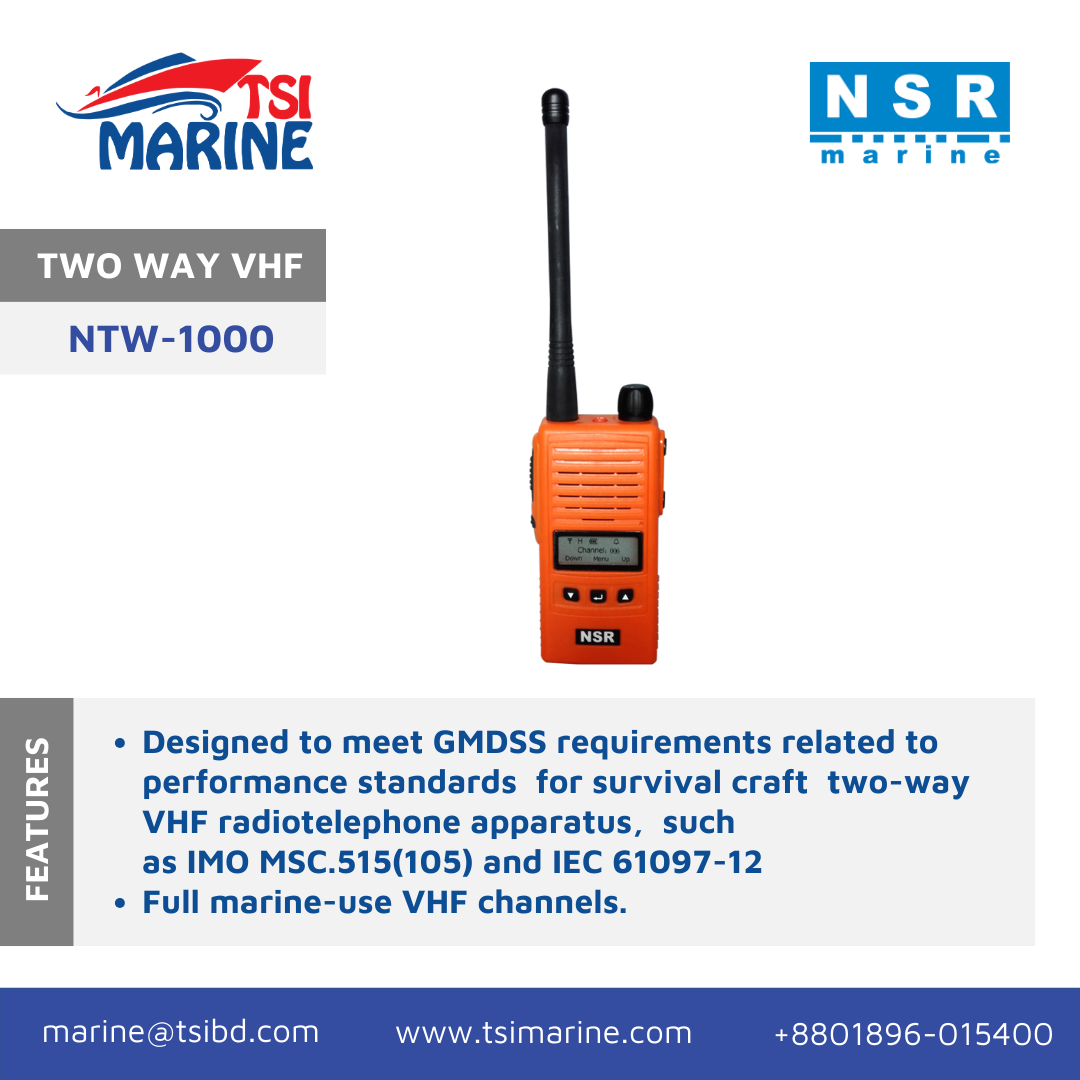 Designed to meet GMDSS requirements related to performance standards for survival craft two-way VHF radiotelephone apparatus, such as IMO MSC.515(105) and IEC 61097-12