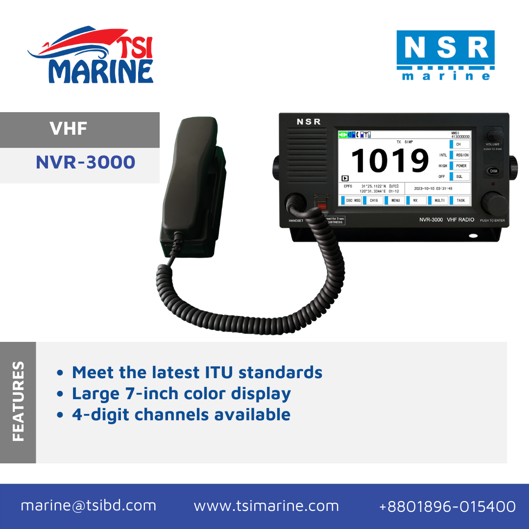 High performance VHF device, capable of voice communication and DSC (digital selective calling) facilities as well.