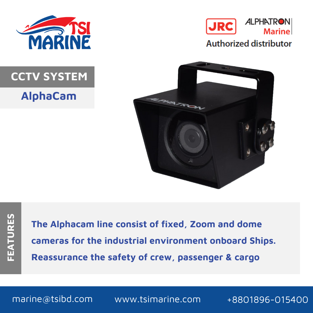 The Alphacam line consist of fixed, Zoom and dome cameras for the industrial environment onboard Ships. Reassurance the safety of crew, passenger & cargo